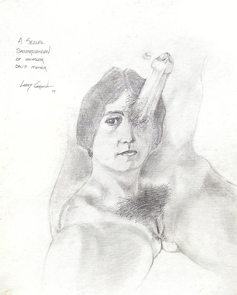 I noticed that my dreams often created strange juxtapositions of images. These eventually evolved into bastardizations, where I took established icons from our culture (David, The Mona Lisa, Beethoven) and abused them in some way. This reached its apex with A Sexual Bastardization of Salvador Dali's Mother.