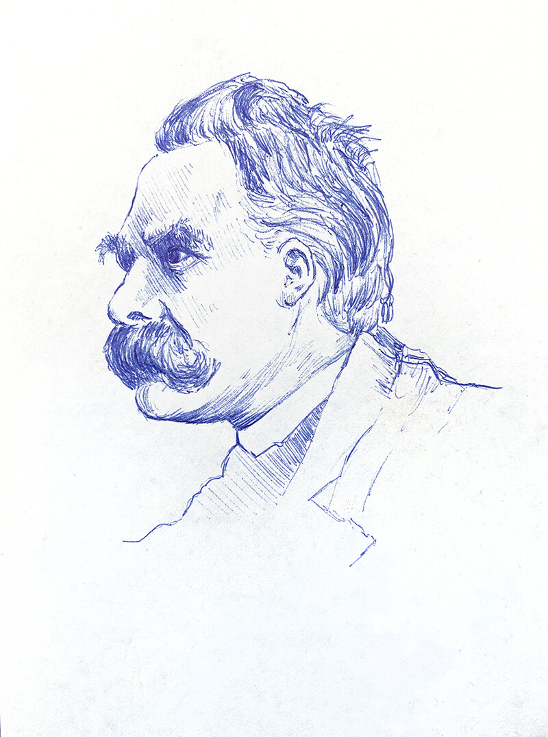 My obsession with Dali waned after high school, but I developed a new interest in philosophers like Nietzsche and Wittgenstein, who I sketched in my notebooks at the time.