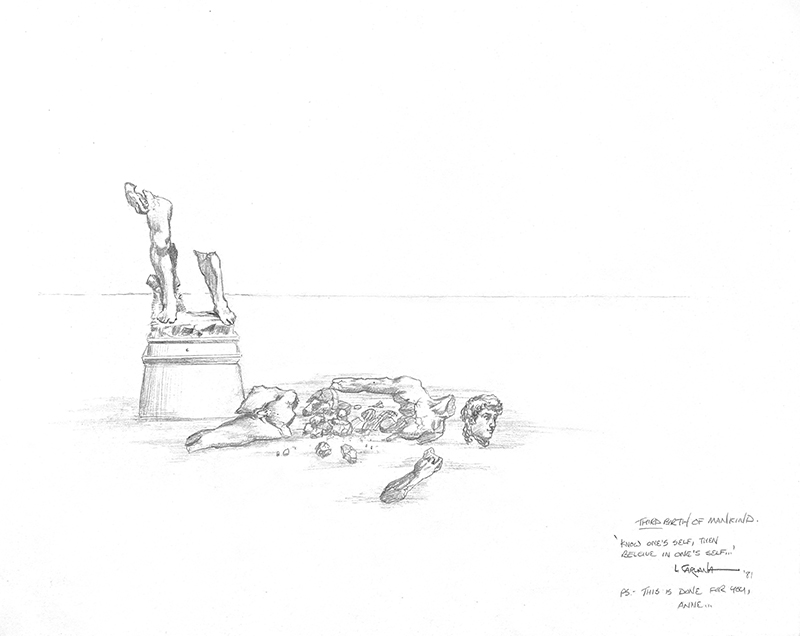 Both The Dance of Death and Dance Among the Ruins chronicle the end of my circle of friends in Toronto, because I was leaving Canada for Europe. All the figures in these drawings are portraits. My girlfriend at the time (in my roman à clef, I call her Annabelle) appears in a lot of these drawings, including the three nudes.