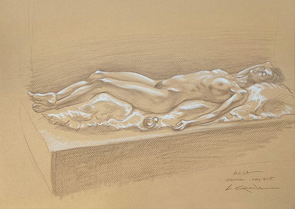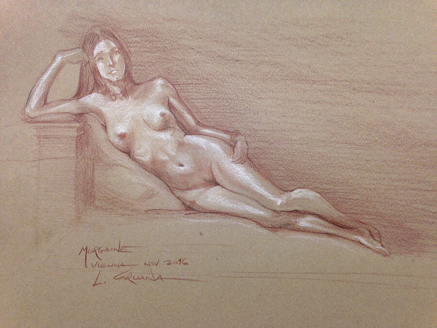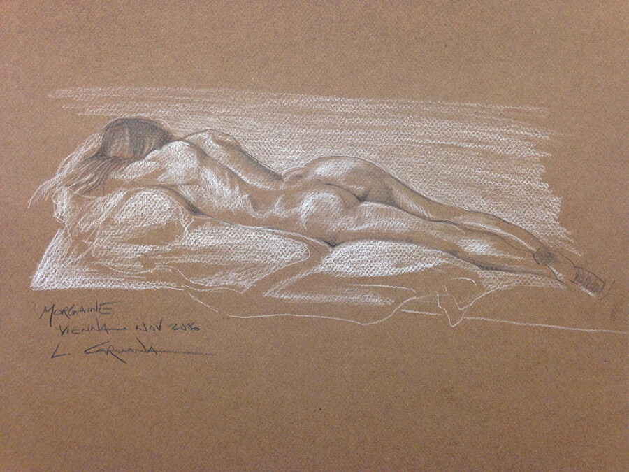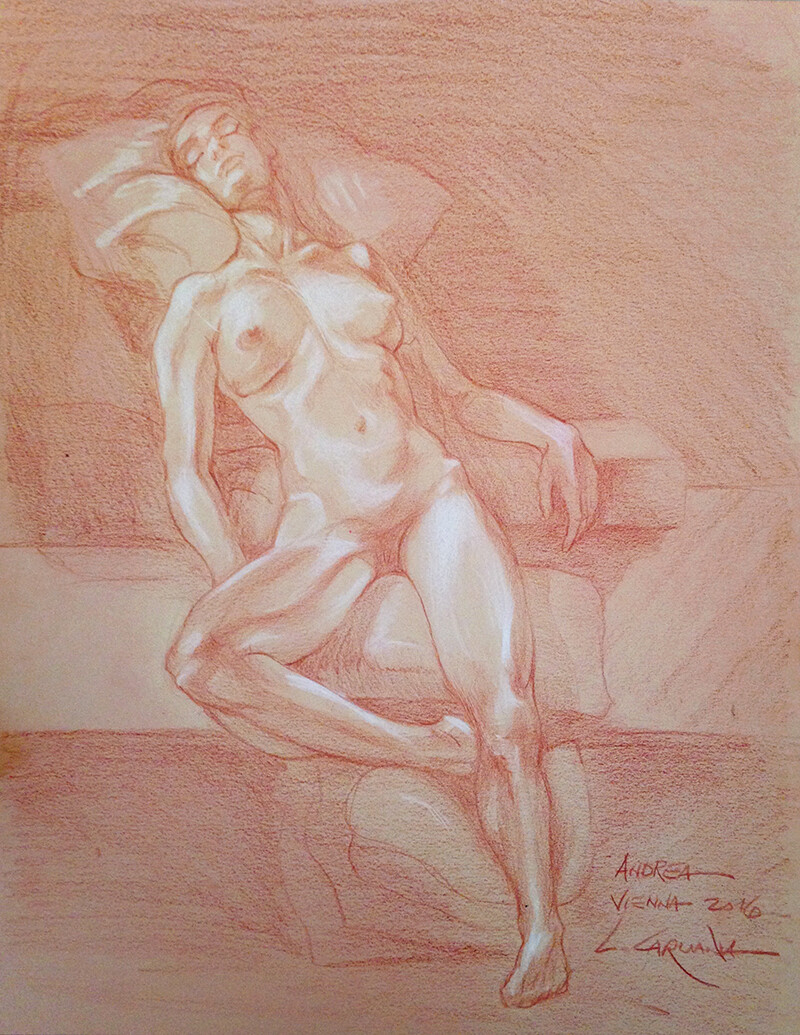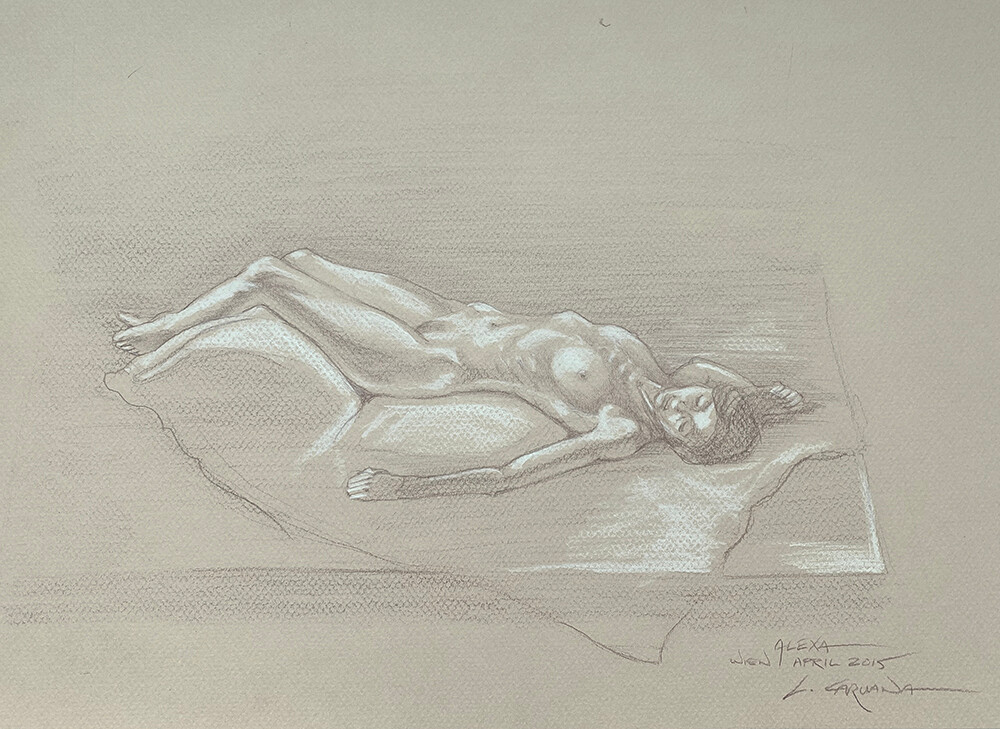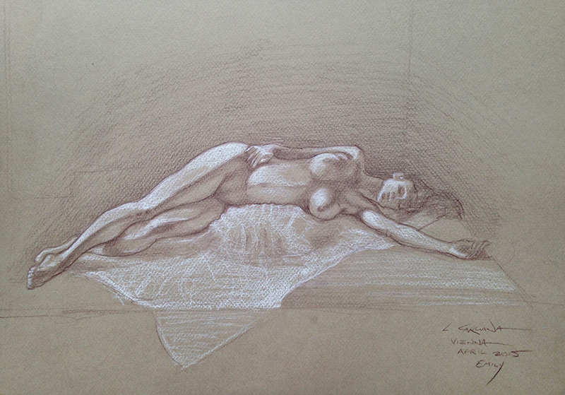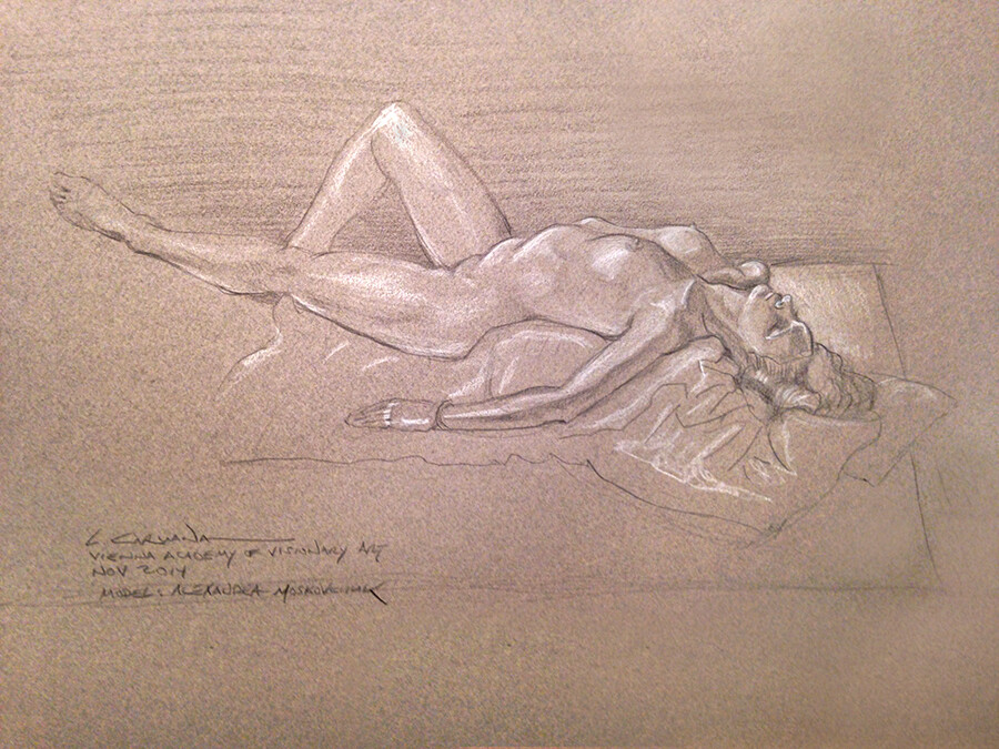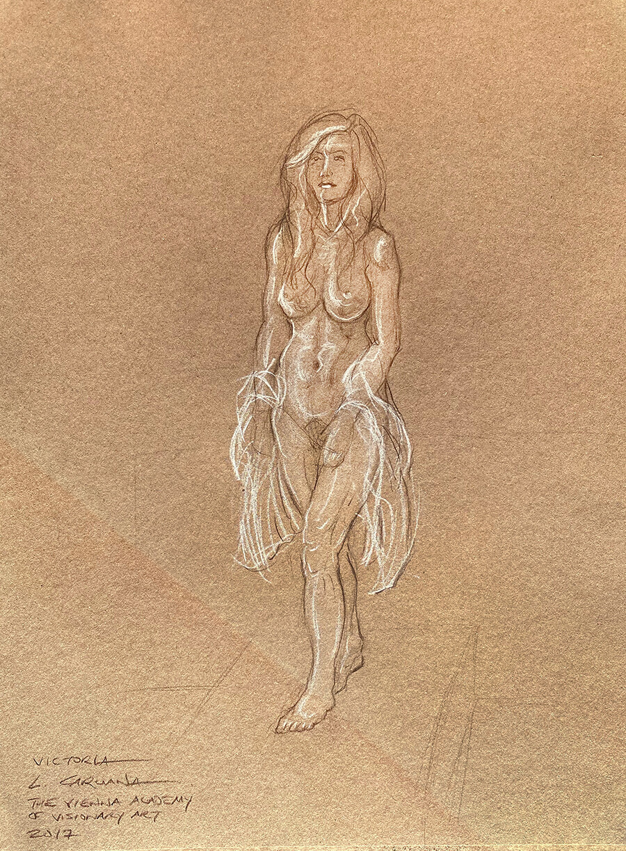 Since its inception in 2013, The Vienna Academy of Visionary Art offered Figure Drawing classes every Wednesday afternoon, also open to the public. For many years, I was responsible for running these sessions ~ posing the model, arranging lights and music, timing the breaks and offering advice on the students' work.