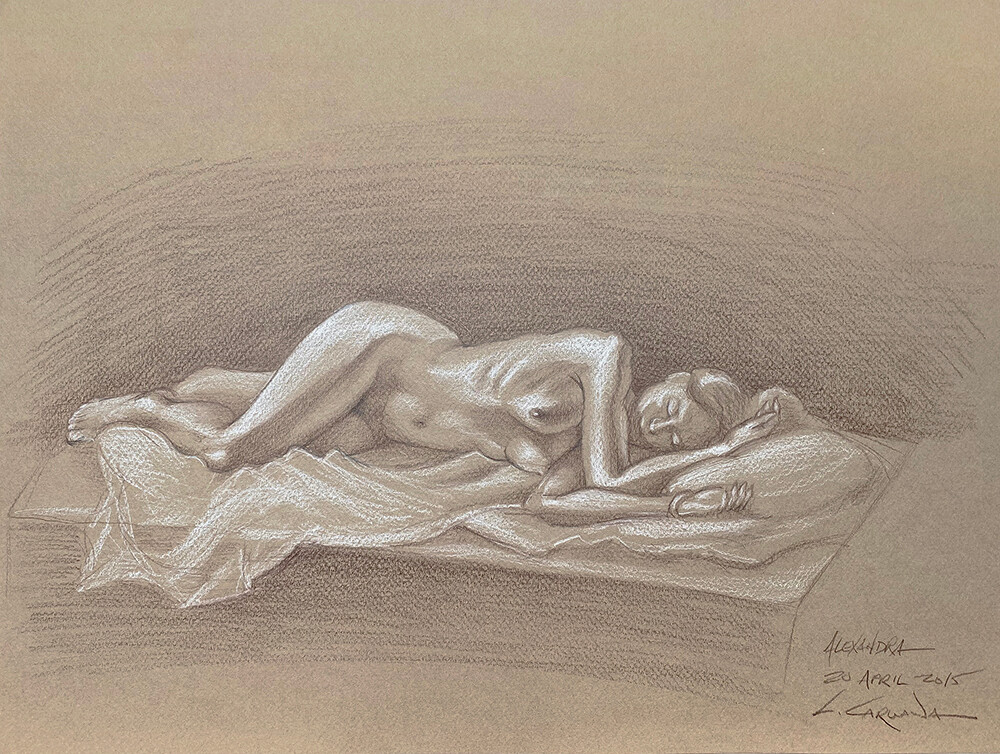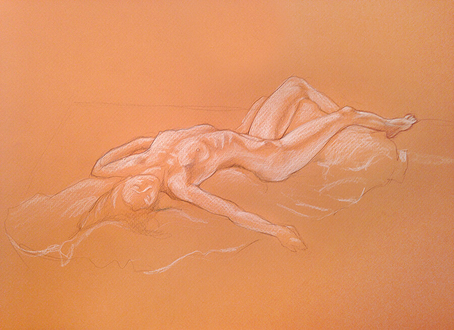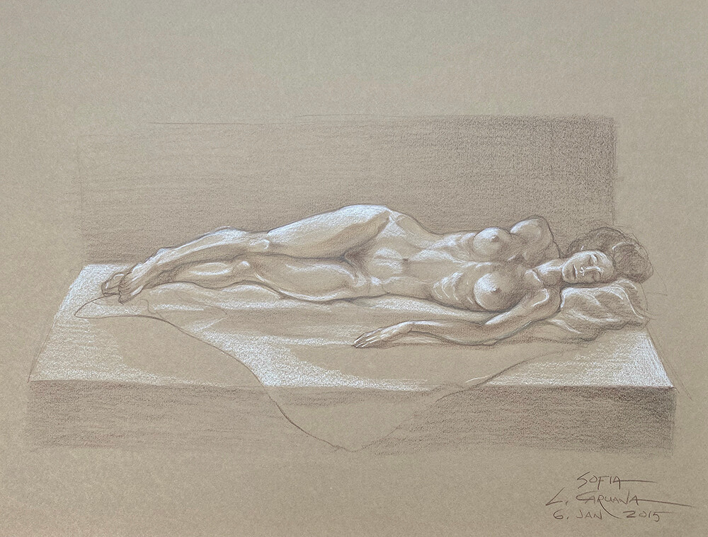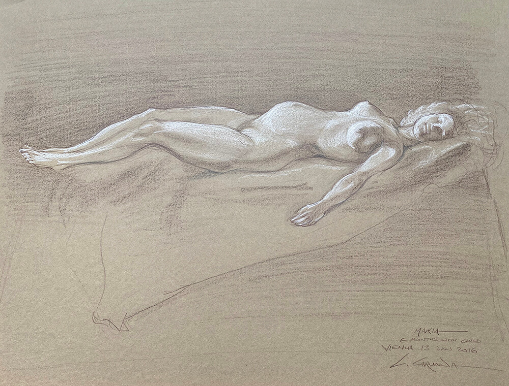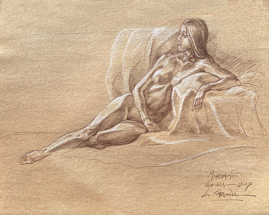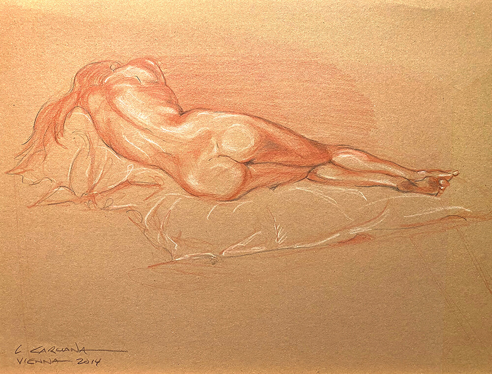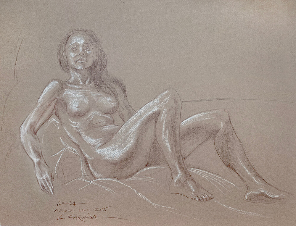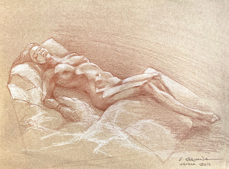 Since its inception in 2013, The Vienna Academy of Visionary Art offered Figure Drawing classes every Wednesday afternoon, also open to the public. For many years, I was responsible for running these sessions ~ posing the model, arranging lights and music, timing the breaks and offering advice on the students' work.
