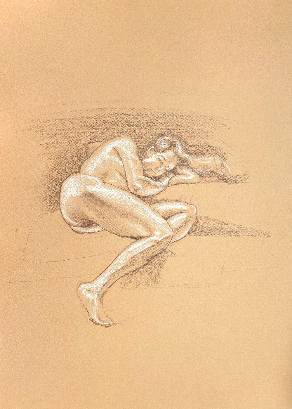 There's an art to constructing the figure, searching for the underlying bone structure and respecting the rules of proportion while still trying to create a graceful line that captures the essence of the model.