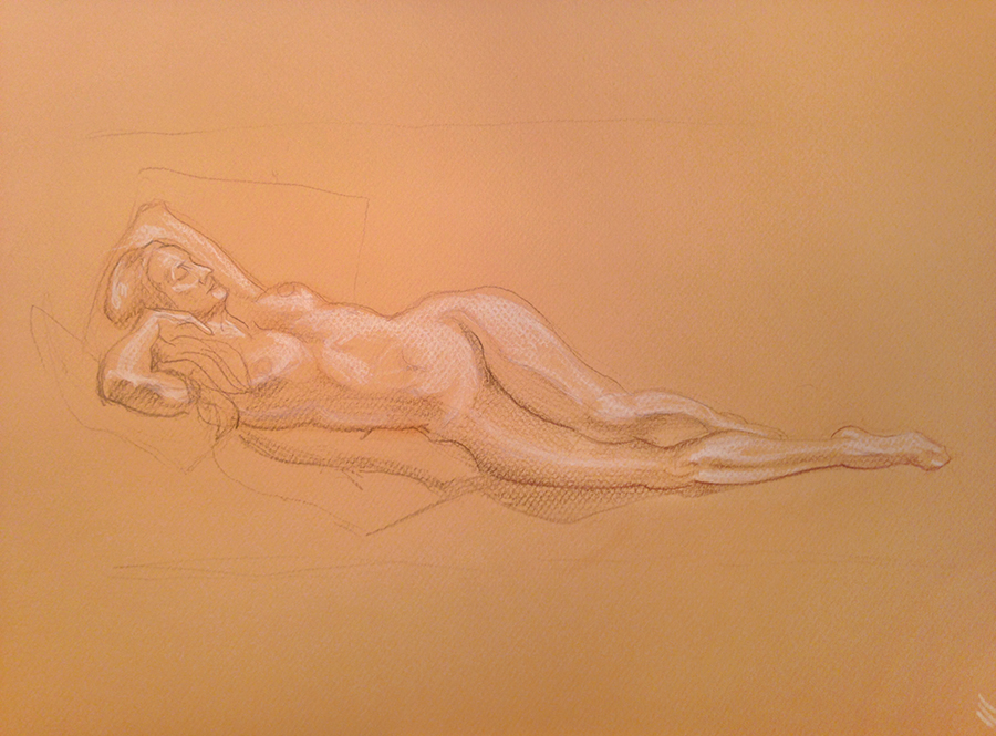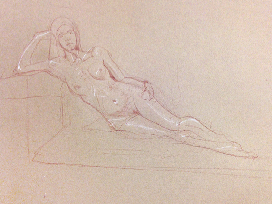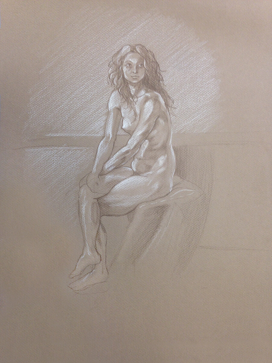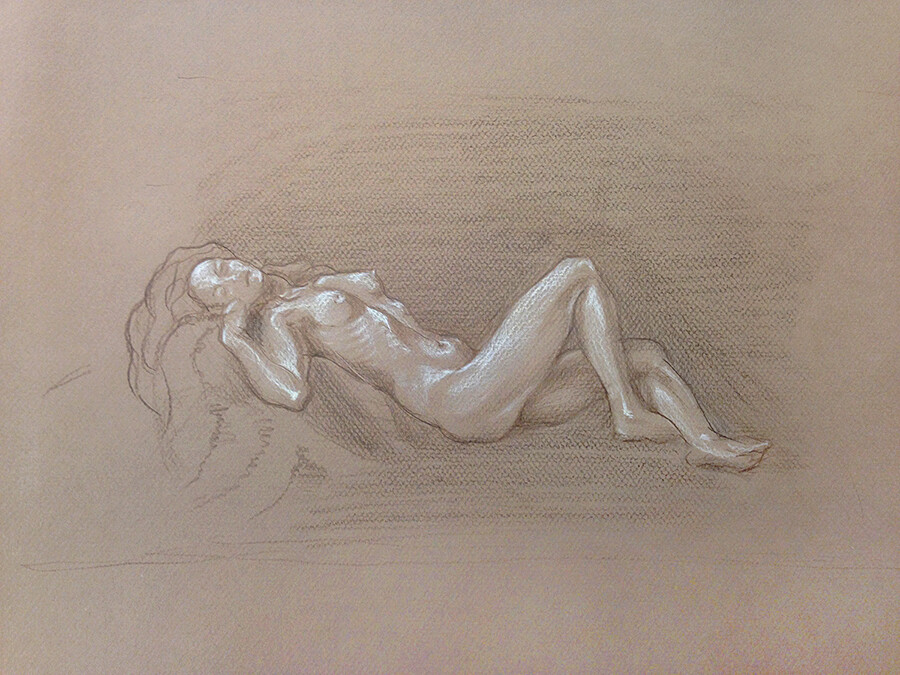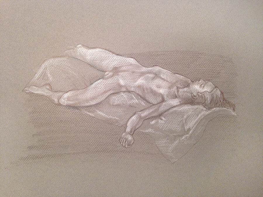 I started exploring a variety of working methods, usually crayons on toned paper, with white chalk for the highlights and a brown or sanguin crayon for the shadows.